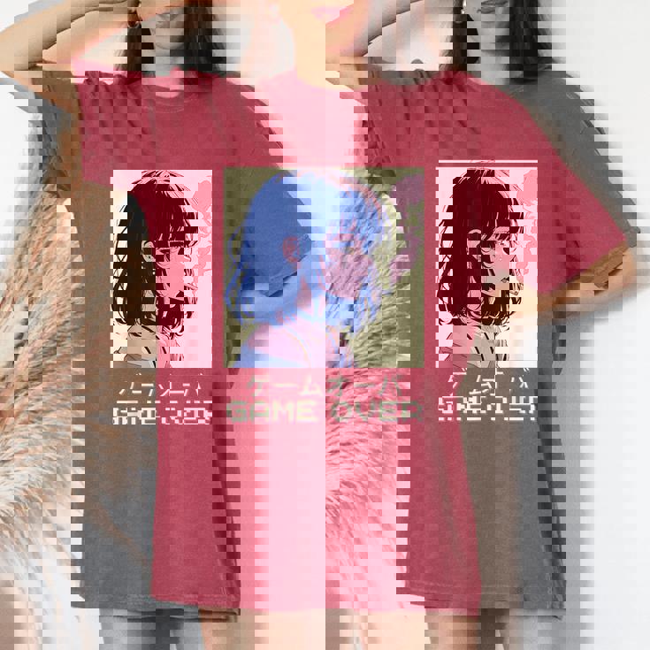 90S Japanese Sad Anime Girl Game Over Vaporwave Aesthetic Women's Oversized Comfort T-Shirt