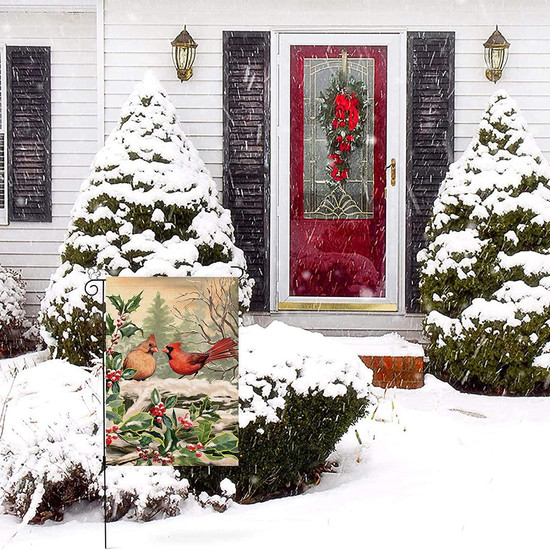Christmas Garden Flag, Double Sided Rustic Bird Cardinal Holly Berry Branches Snow House Flags Welcome Winter Holiday New Year Porch Sign For Home Lawn Outdoor Decor adds a unique, distinctive finish to your front yard or garden.