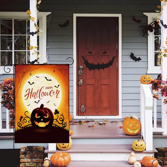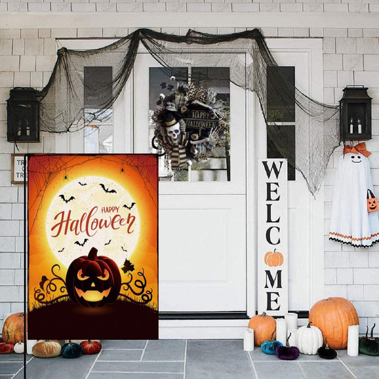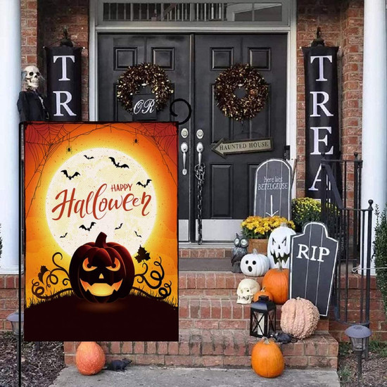Halloween Pumpkin Garden Flags Double Sided Small Garden Flag Black Cat Bat Holiday Halloween House Flag For Outdoor Yard Garden Decoration adds a unique, distinctive finish to your front yard or garden.