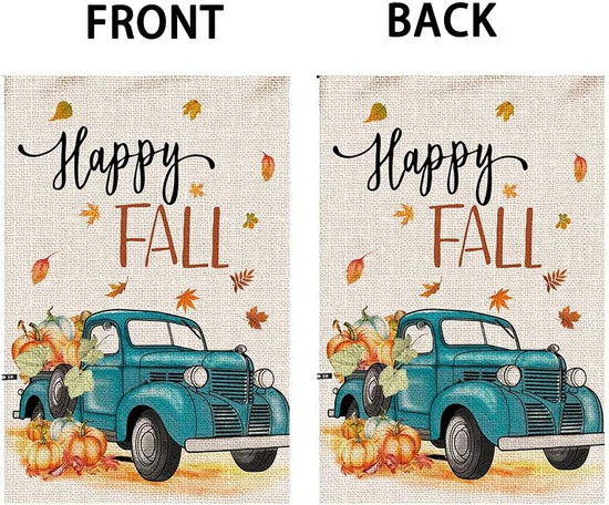 Happy Fall Garden Flag, Vertical Double Sided Burlap Seasonal Autumn Pumpkin Farm Truck Garden Flags, Fall Thanksgiving Harvest Rustic Yard Outdoor Decoration 12 X 18 Inch adds a unique, distinctive finish to your front yard or garden.