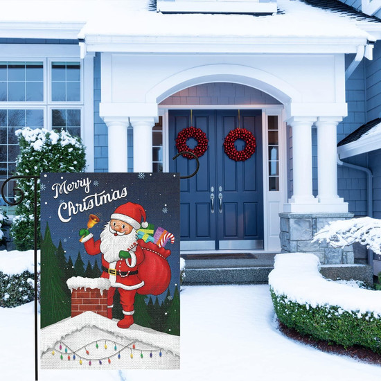 Merry Christmas Garden Flag 12x18 Double Sided Winter Holiday Santa Garden Yard Flags For Outdoor House Decoration