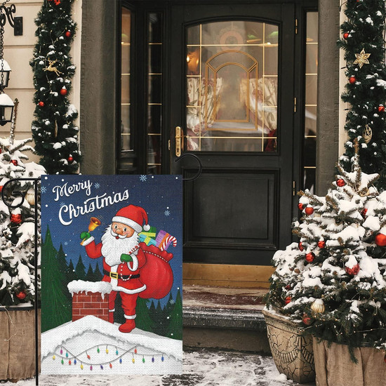Merry Christmas Garden Flag 12x18 Double Sided Winter Holiday Santa Garden Yard Flags For Outdoor House Decoration adds a unique, distinctive finish to your front yard or garden.