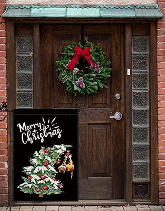 Merry Christmas Garden Flag Tree Cat Balls Winter Vertical Double Sided Outdoor Decorations Holiday Yard Decor adds a unique, distinctive finish to your front yard or garden.