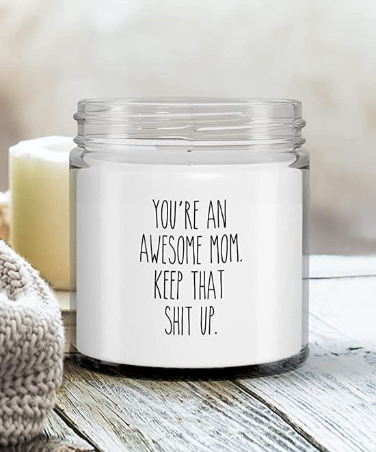 You're an Awesome Mom Keep That Shit Up Candle Vanilla Scented Soy Wax Blend 9 oz. with Lid creates a warm welcoming ambience and makes that special someone happy.