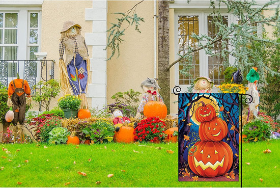 Smile Pumpkin Gnomes Halloween Garden Flag Vertical Double Sided Autumn Burlap Yard Outdoor Decor adds a unique, distinctive finish to your front yard or garden.