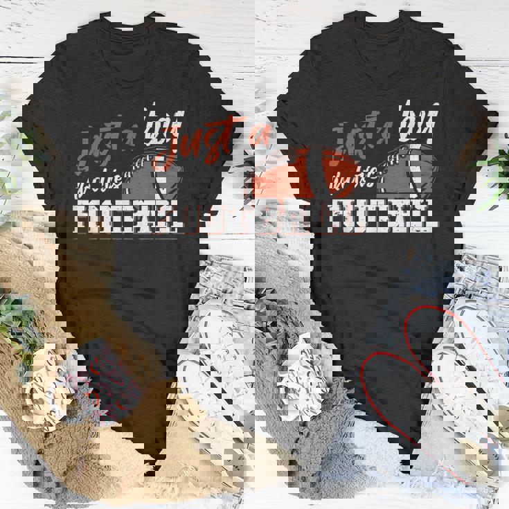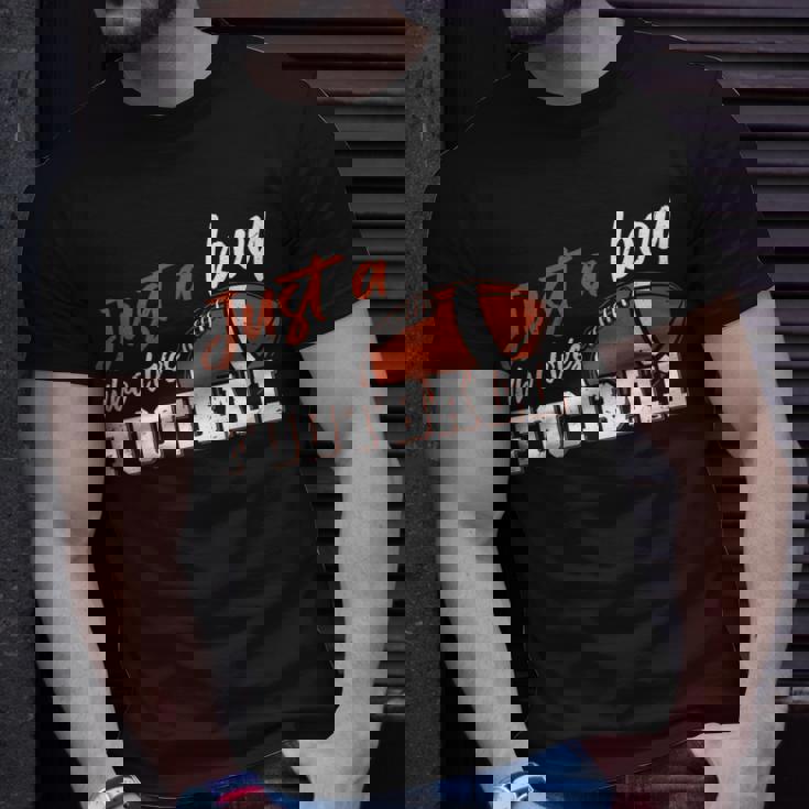 American Football Player Just A Boy Who Loves Football T-shirt is great for layering and makes unique gifts for family, friends, coworkers, or your team.