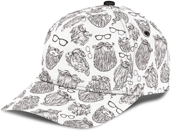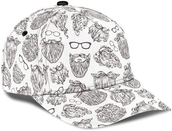 Berd Glasses Beard White Printed Unisex Hat Classic Cap, Snapback Cap, Baseball Cap Hat