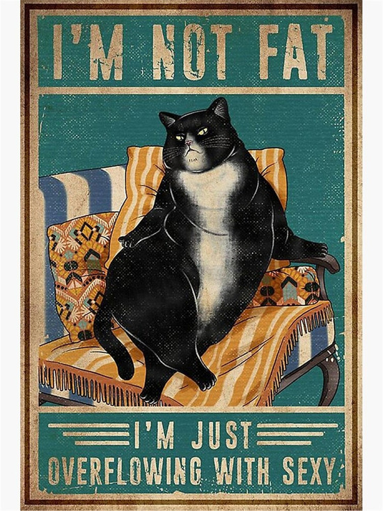Black Cat Retro Vintage Metal Tin Signs I Am Not Fat I Am Just Overflowing With Sexy Metal Poster Home Art Wall Decor Plaque is designed to make homes feel welcoming and inviting.
