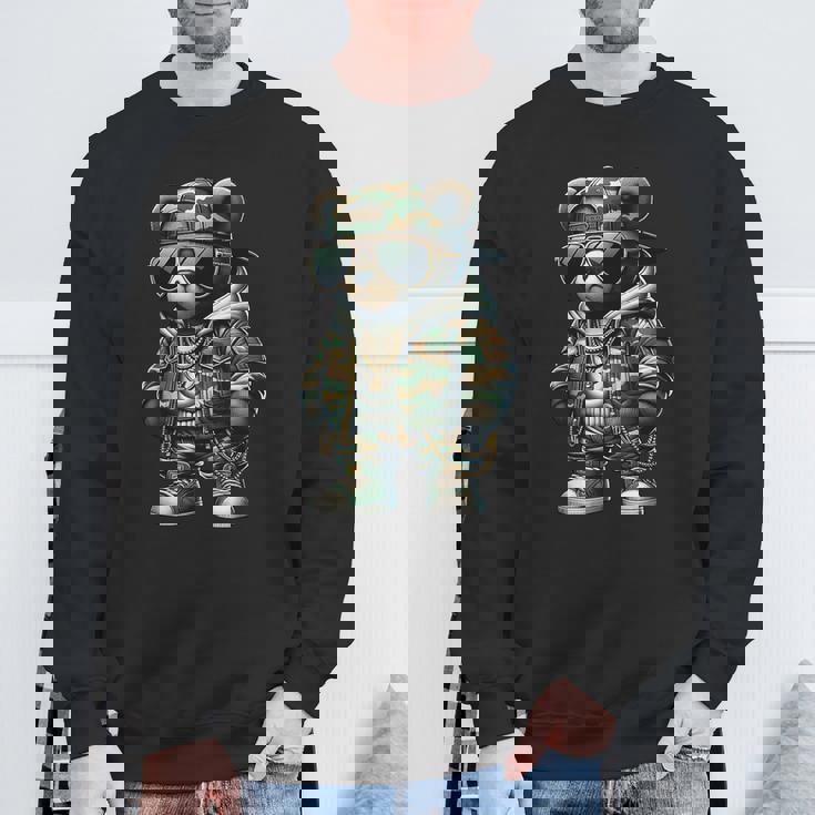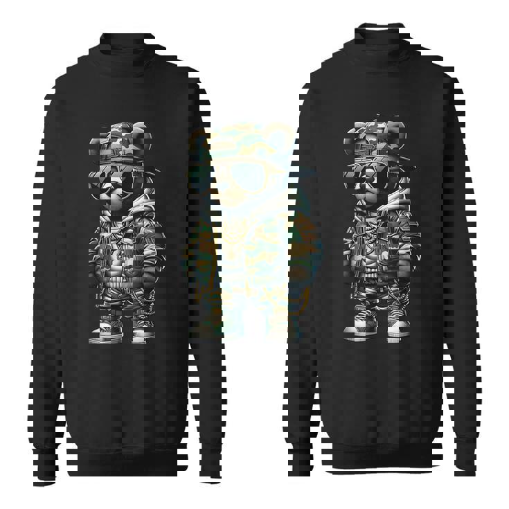 Camo Teddy Bear Hip-Hop Streetwear-Urban Camouflage Bear Sweatshirt