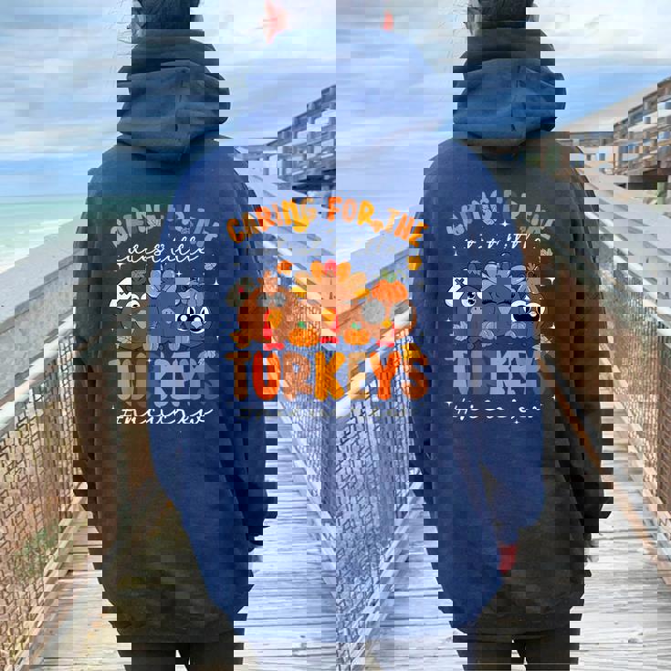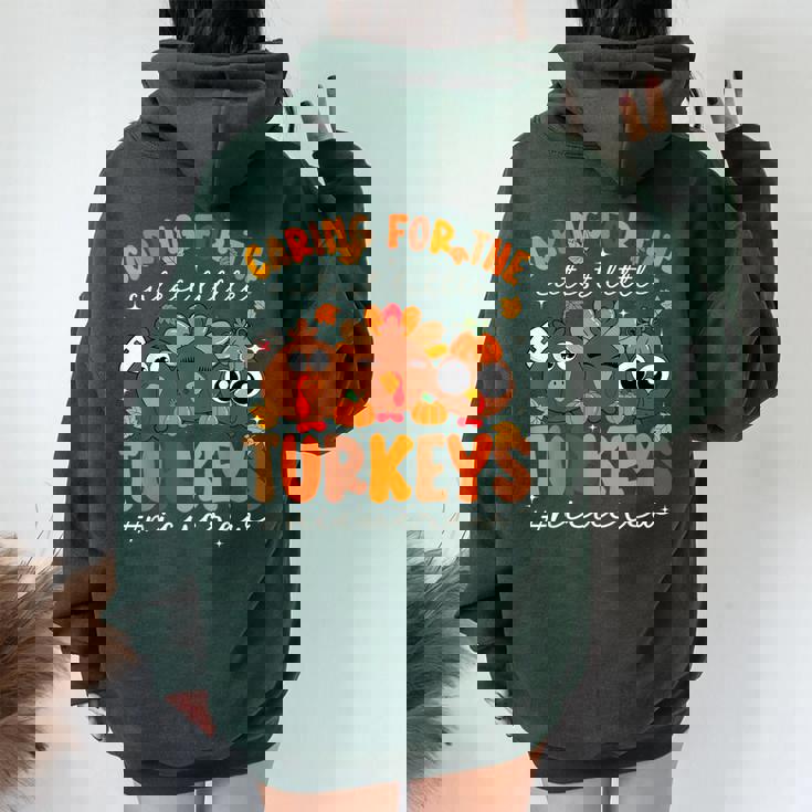Caring For The Cutest Turkeys Nicu Nurse Thanksgiving Women Oversized Hoodie Back Print