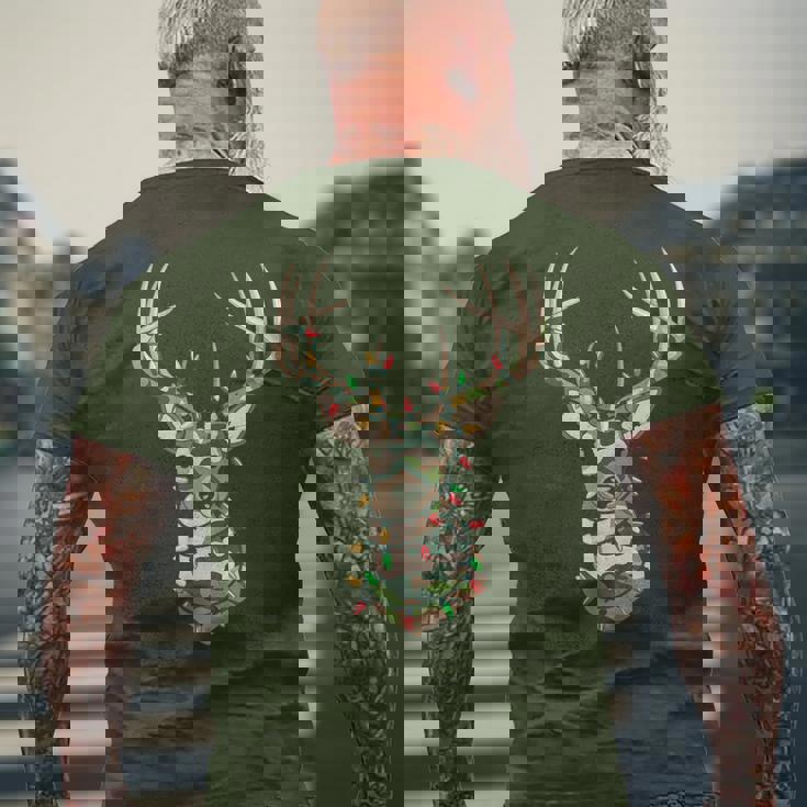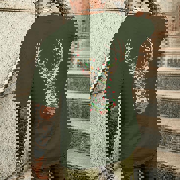Christmas Camo Holiday Hunting Reindeer Deer Xmas Lights Men's T-shirt Back Print