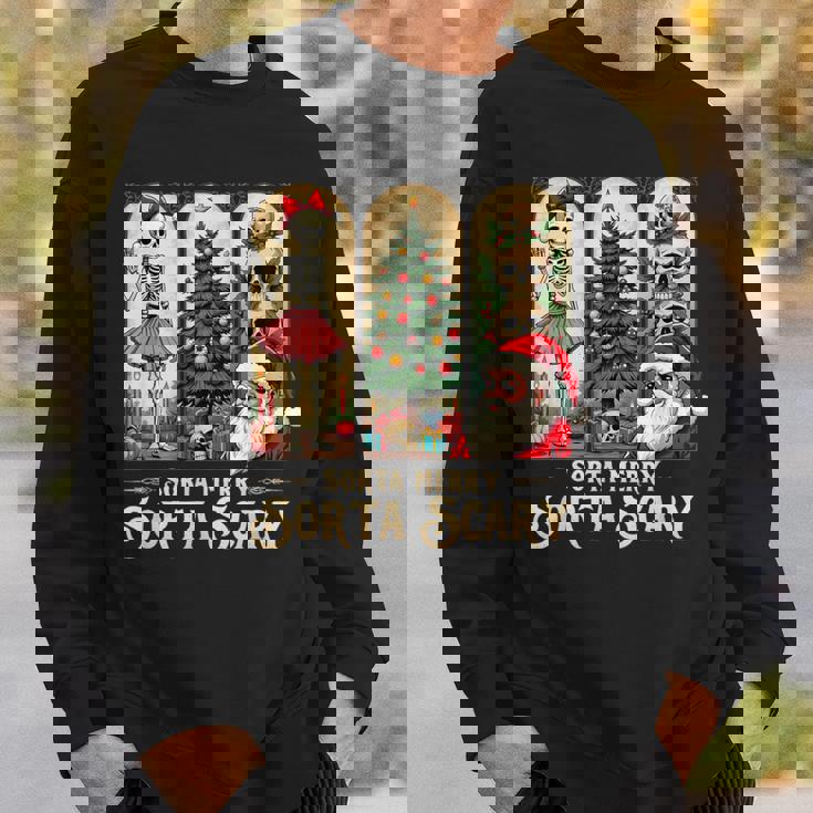 Christmas Vibes Xmas Skeleton Sorta Merry Sorta Scary Gothic Sweatshirt brings in high quality in terms of material and style, ensuring warmth and comfort.