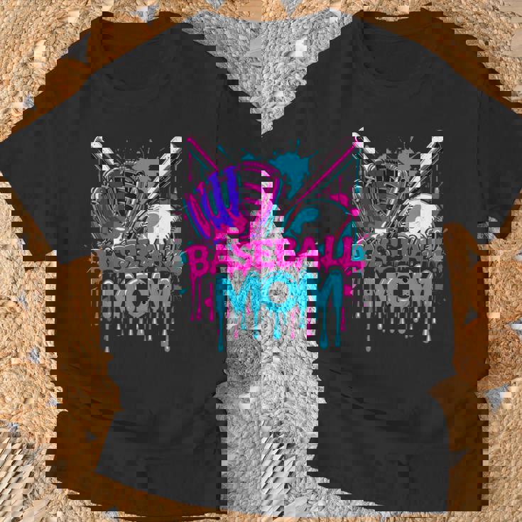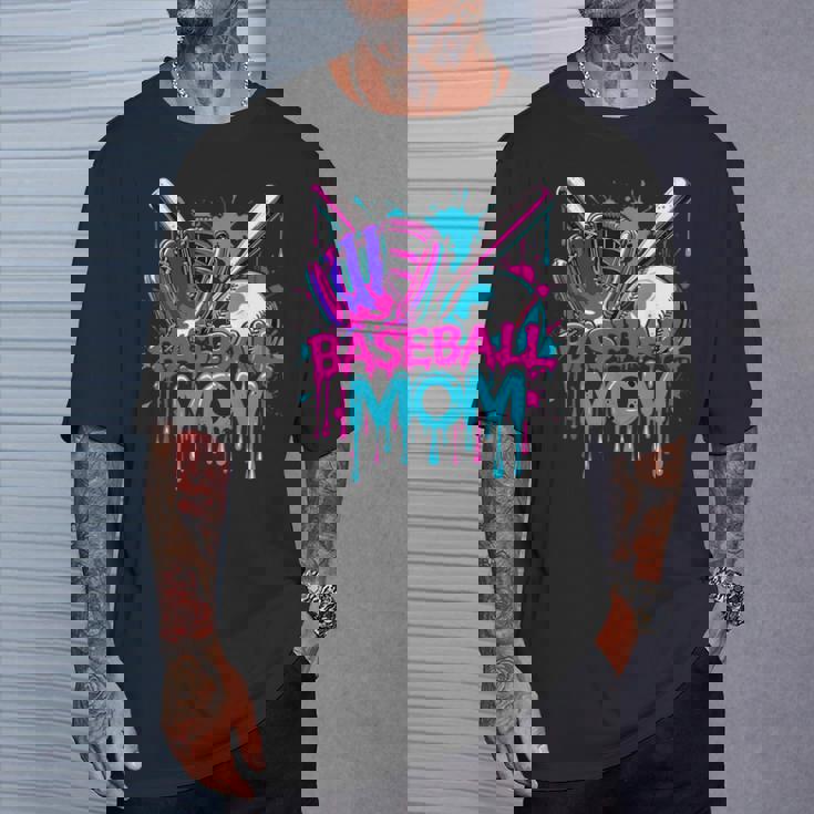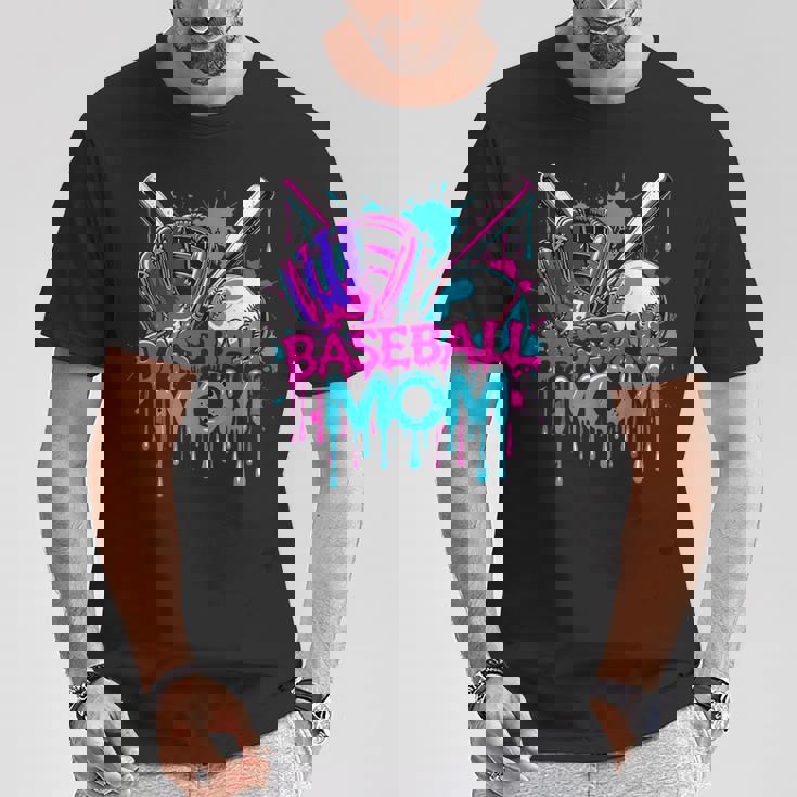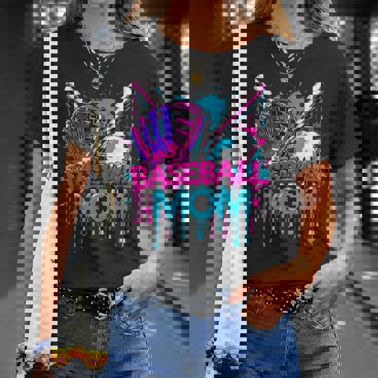 Cool Baseball Mom Neon Drip Sports Fan T-Shirt