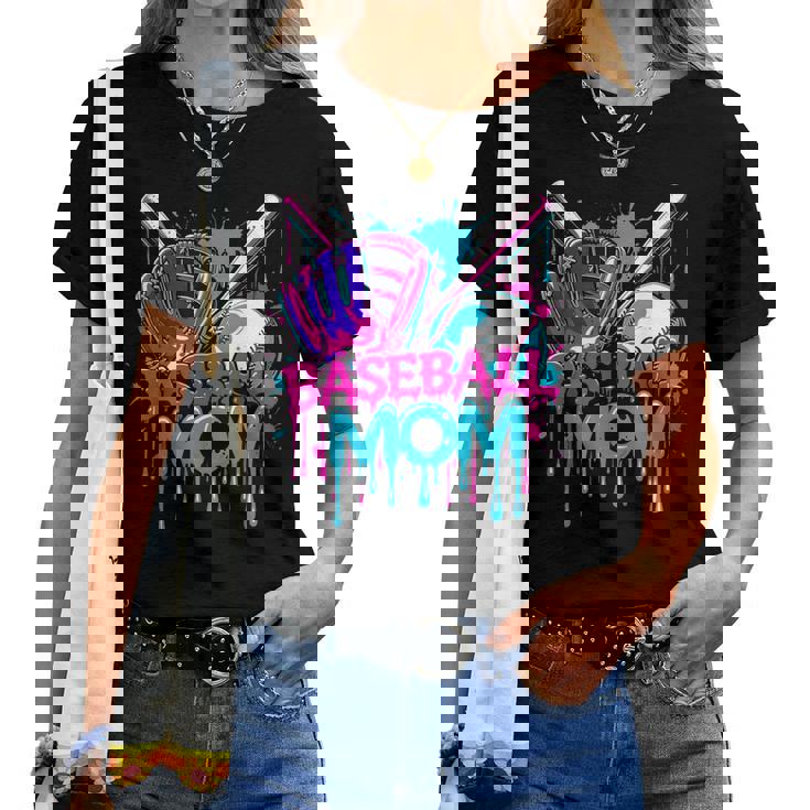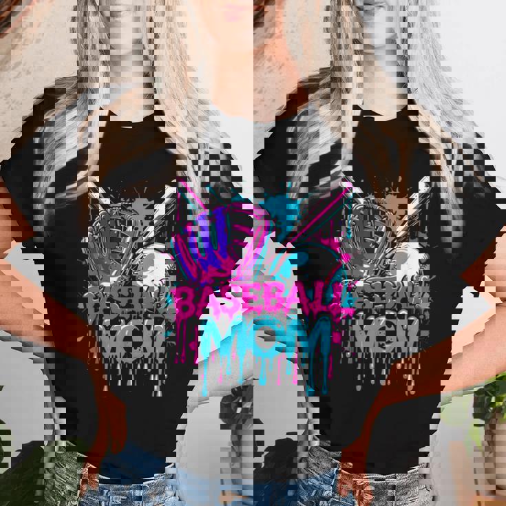 Cool Baseball Mom Neon Drip Sports Fan Women T-shirt