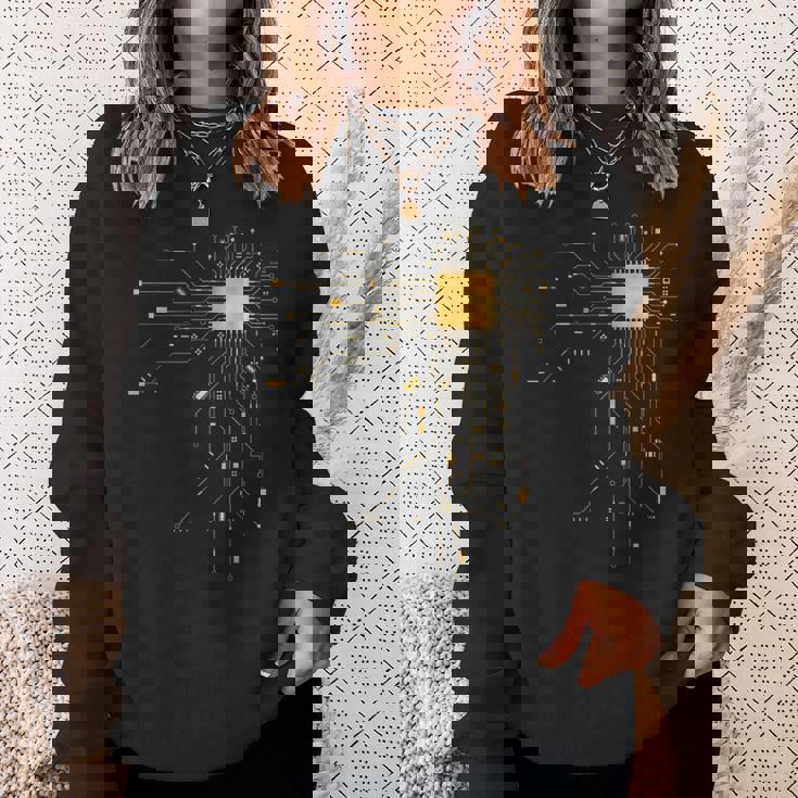 Cpu Core Processor Circuit Board Ai Golden Geek Gamer Heart Sweatshirt