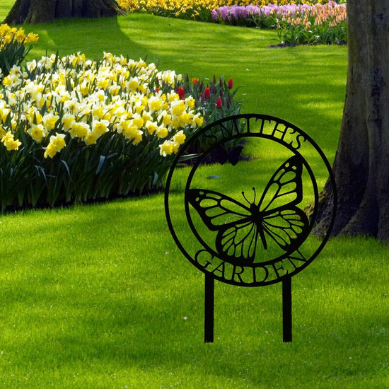 Custom Metal Garden Sign with Stakes, Metal Yard Art, Personalized Butterfly Home Garden Decor