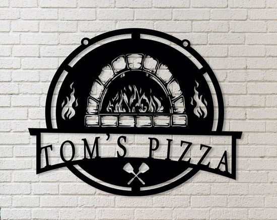Custom Metal Pizza Oven Wall Sign, Kitchen Decor, Personalized Oven Name Sign, Outdoor Wall Decor