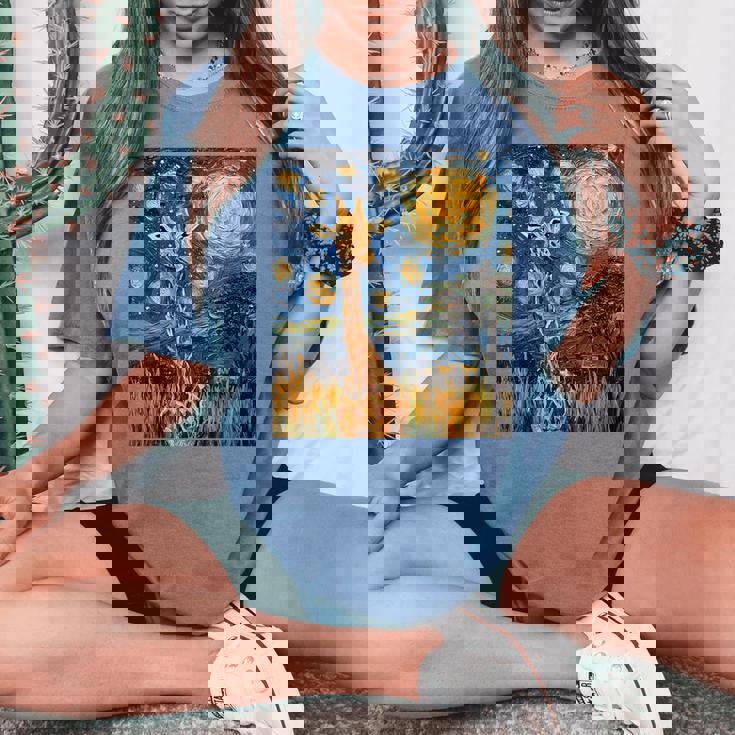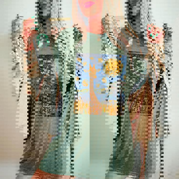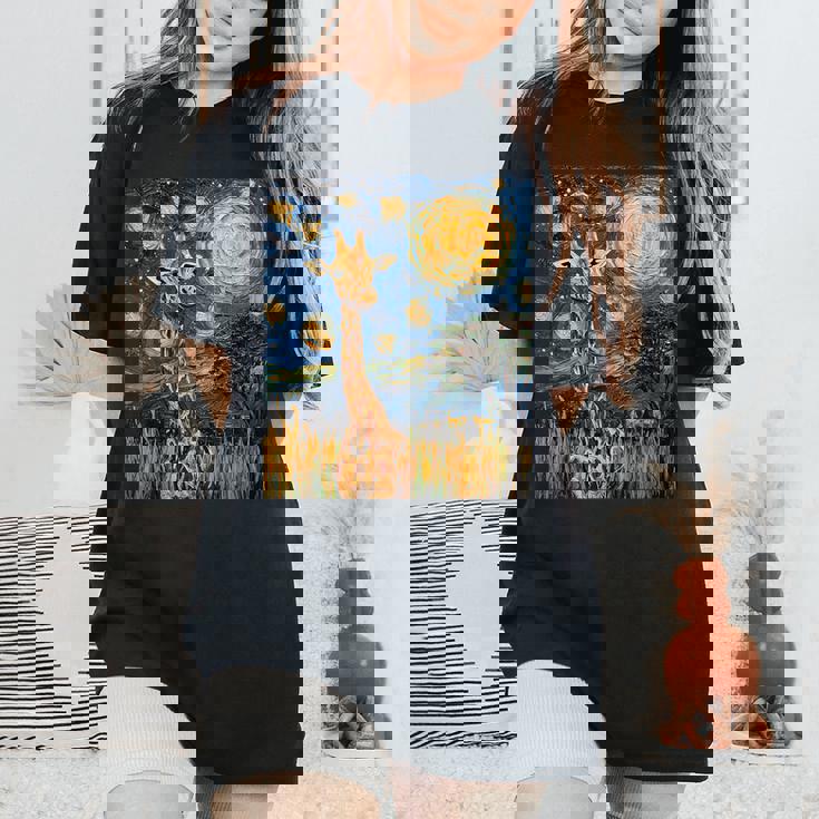 Cute Giraffe Africa Van Gogh Style Starry Night Women's Oversized Comfort T-Shirt