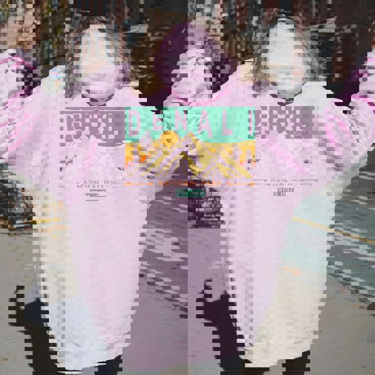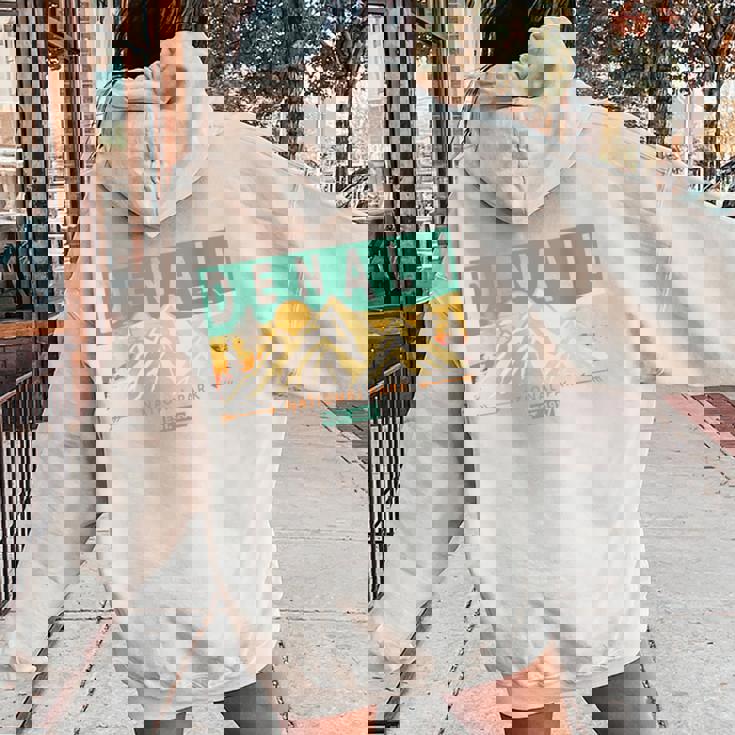 Denali National Park Mountains Nature Retro Sunset Vintage Women Oversized Hoodie Back Print