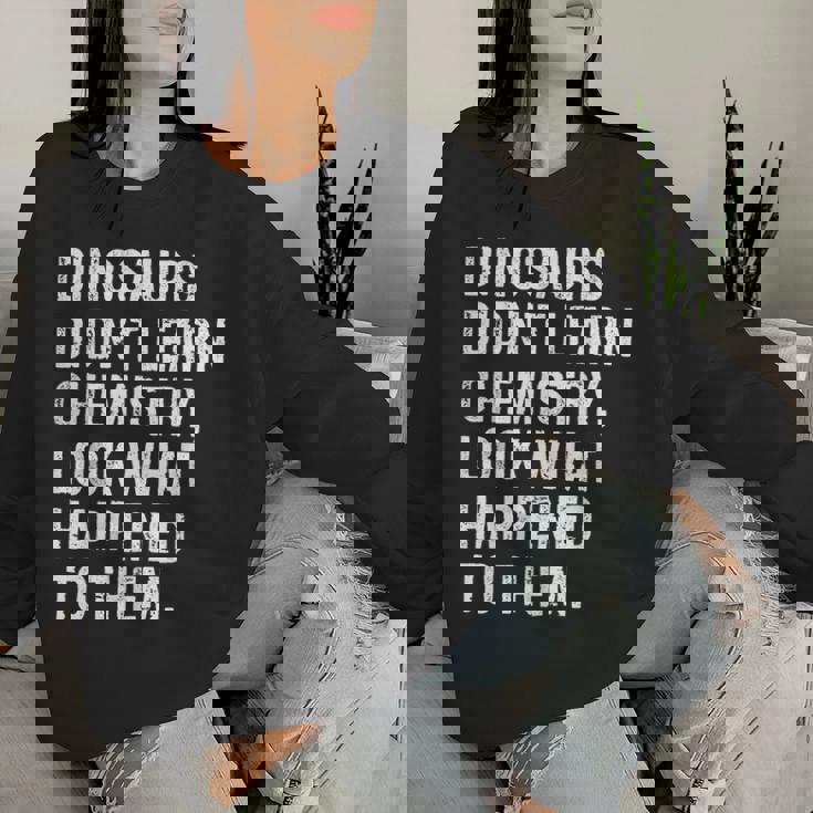 Dinosaurs Didn't Learn Chemistry Science Teacher Women Sweatshirt with unique and artistic designs that add a pop of personality to your casual look.