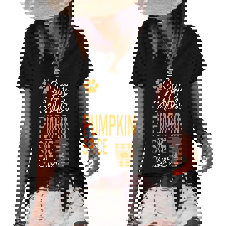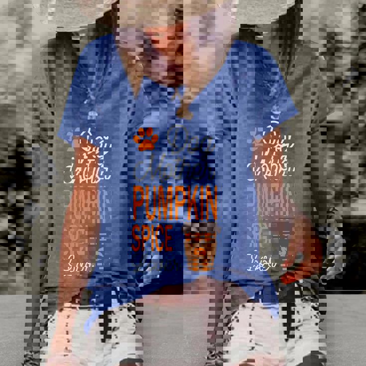 Dog Mother And Pumpkin Spice Halloween Day Retro Halloween Women's Short Sleeve Loose T-shirt with raw-cut edges and loose fit gives an edgy and feminine charm.