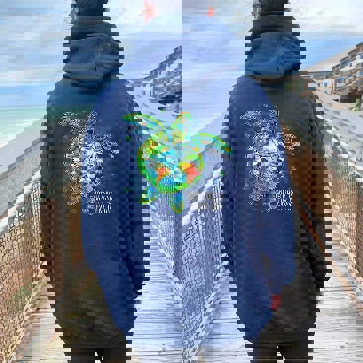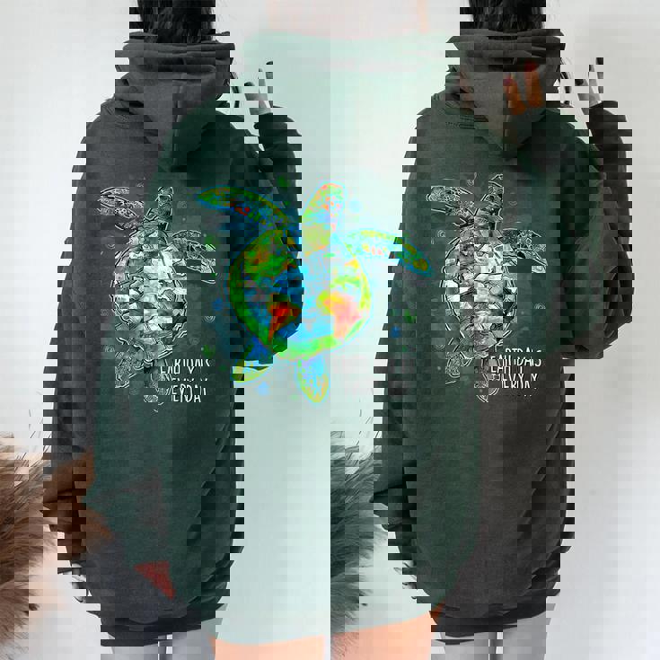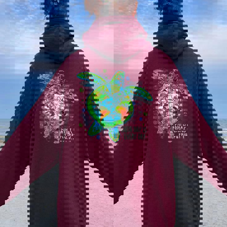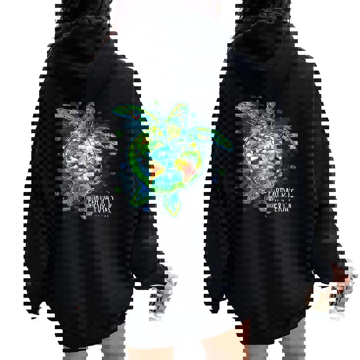 Earth Day Is Every Day Sea Turtle Animal Saving Earth Women Oversized Hoodie Back Print