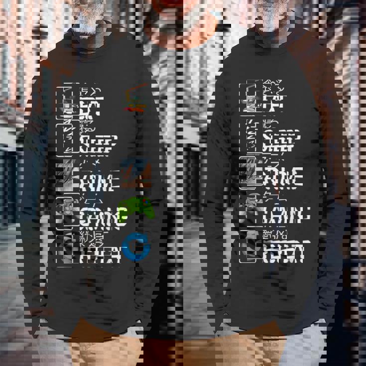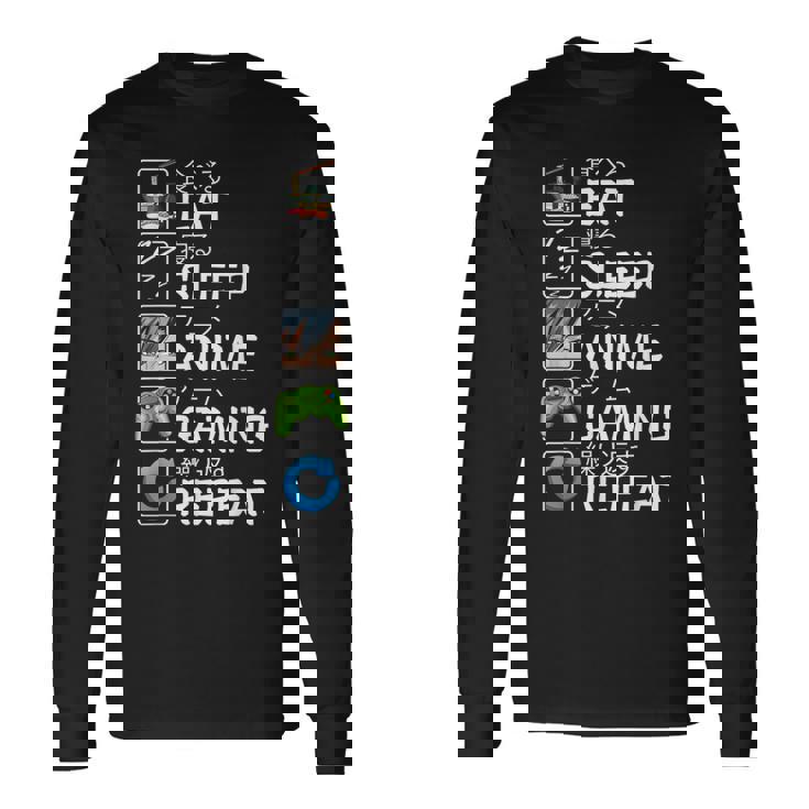 Eat Sleep Anime Gaming Repeat Kawaii Otaku Anime Manga Long Sleeve T-Shirt