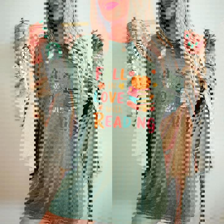 Fall In Love With Reading Autumn Thanksgiving Teacher Women's Oversized Comfort T-Shirt