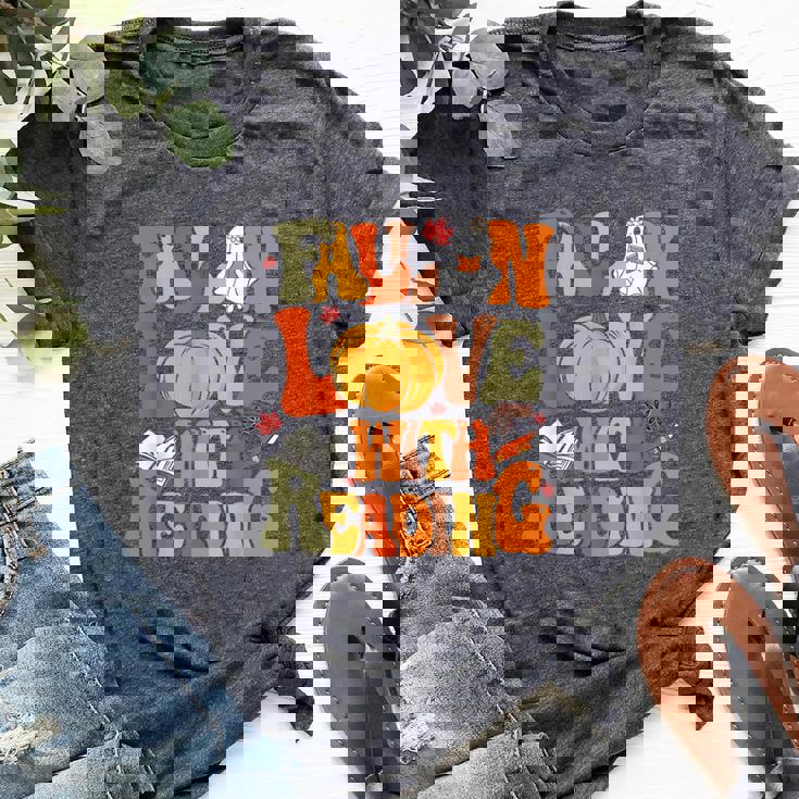 Fall In Love With Reading Book Autumn Pumpkins And Teachers Bella Canvas T-shirt