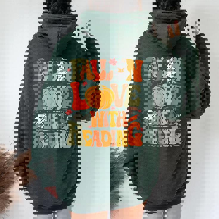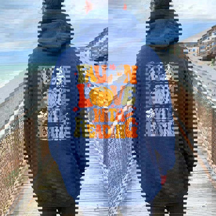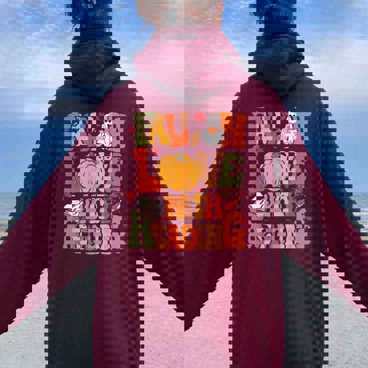Fall In Love With Reading Book Autumn Pumpkins And Teachers Women Oversized Hoodie Back Print