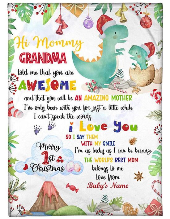 First Christmas Baby Gift, Personalized Hi Mommy Grandma Told Me That You Are Awesome New Baby Mom Christmas Blanket