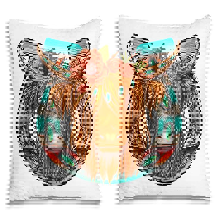 Floral Highland Cow Heifer Horseshoe Western Country Cowboy Pillow