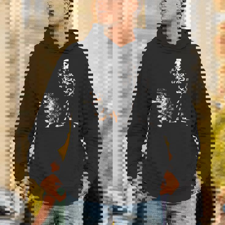 Halloween Australian Shepherd And Skeleton Hoodie