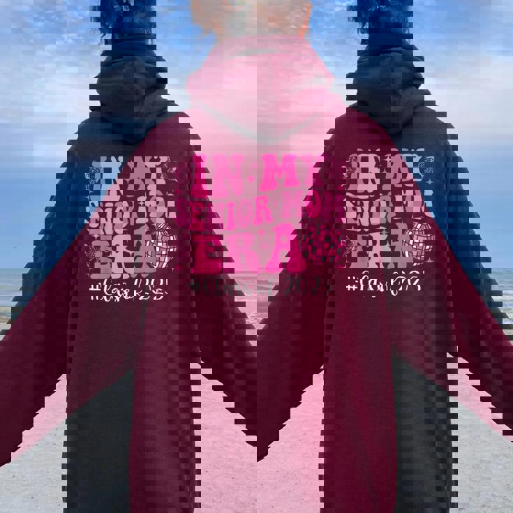Experience the perfect blend of oversized comfort and eye-catching back print with Groovy In My Senior Mom Era Class Of 2025 Senior Mom 2025 Women Oversized Hoodie Back Print.