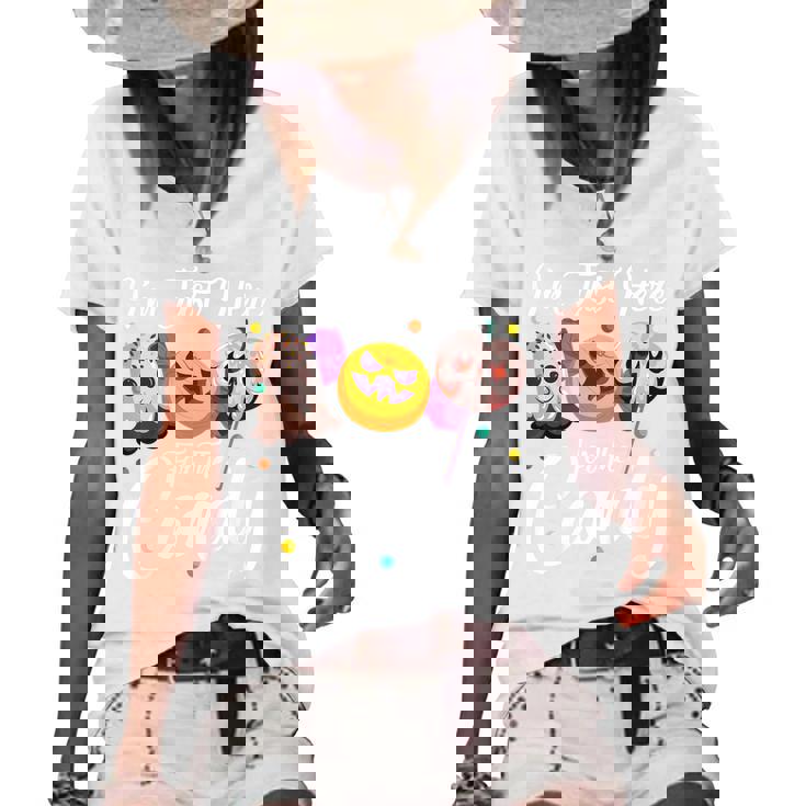Kids Im Just Here For The Candy Halloween Cute Lollipop Sweets Women's Short Sleeve Loose T-shirt with raw-cut edges and loose fit gives an edgy and feminine charm.