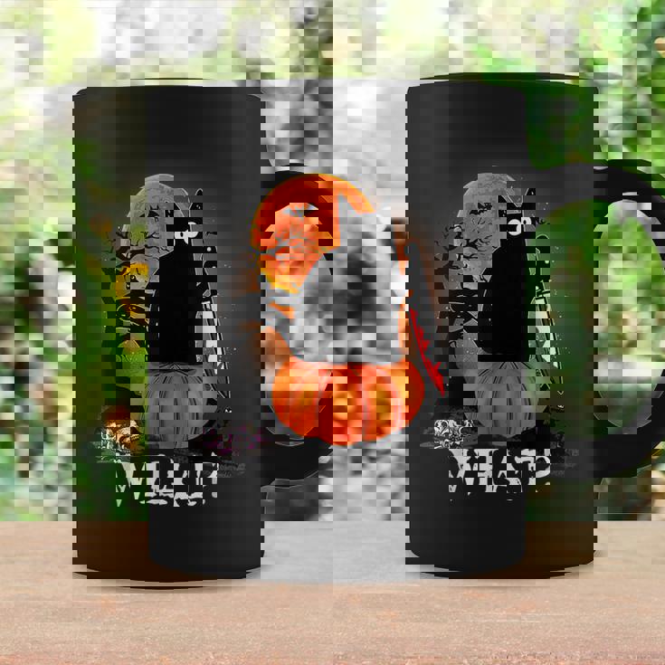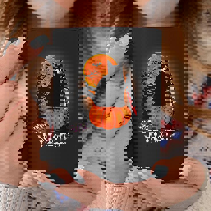 Killer Halloween Scary Moon Black Cat With Knife Pumpkin Coffee Mug