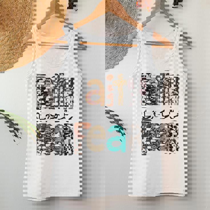 Leopard Faith Over Fear Cowboy Western Country Christian Women Tank Top Basic Casual Daily Weekend Graphic