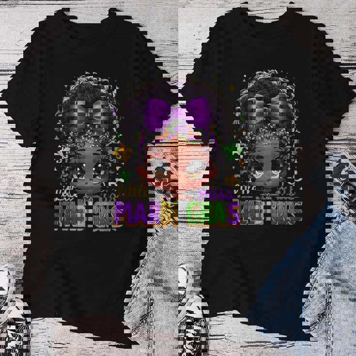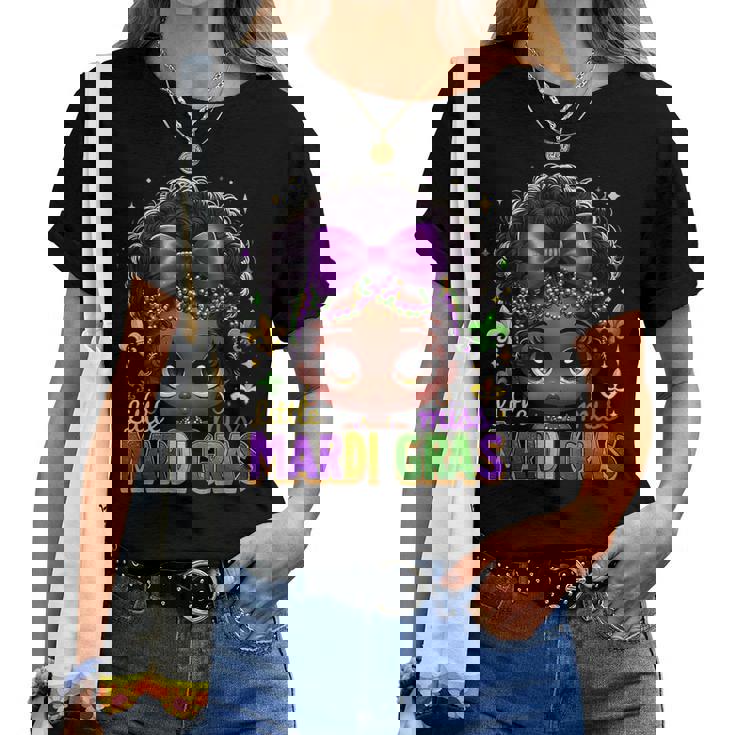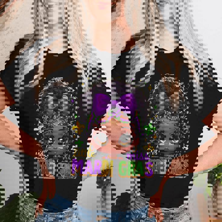 Little Miss Mardi Gras Cute Girl Messy Bun Festival Carnival Women T-shirt