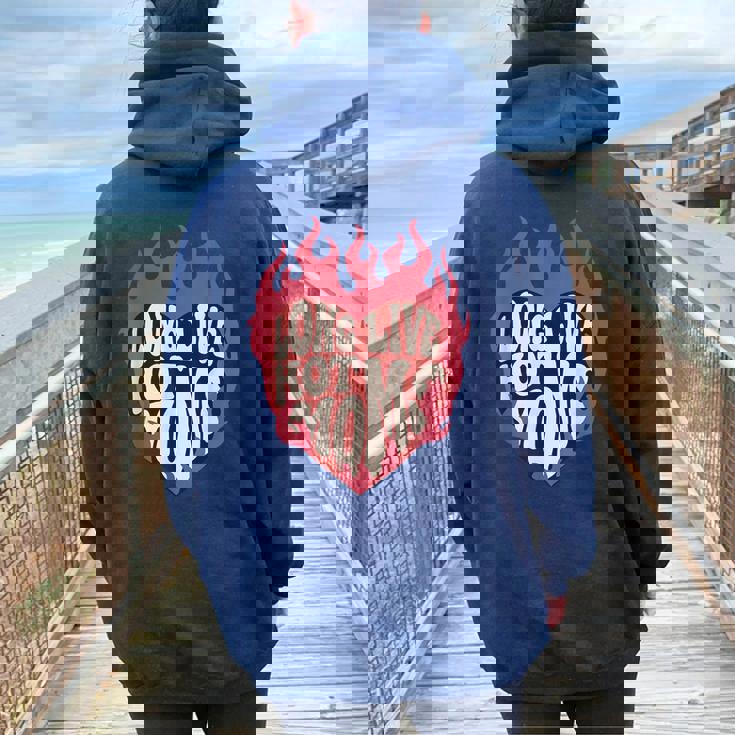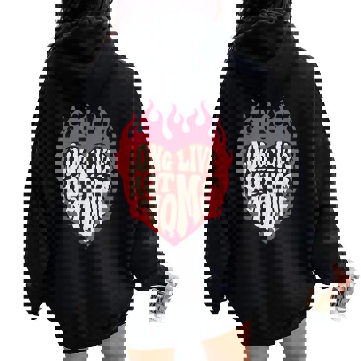 Experience the perfect blend of oversized comfort and eye-catching back print with Long Live Hot Moms Retro Mom Humor Quote Women Oversized Hoodie Back Print.