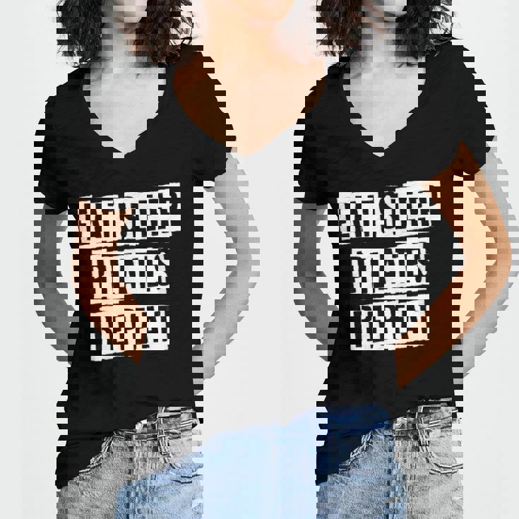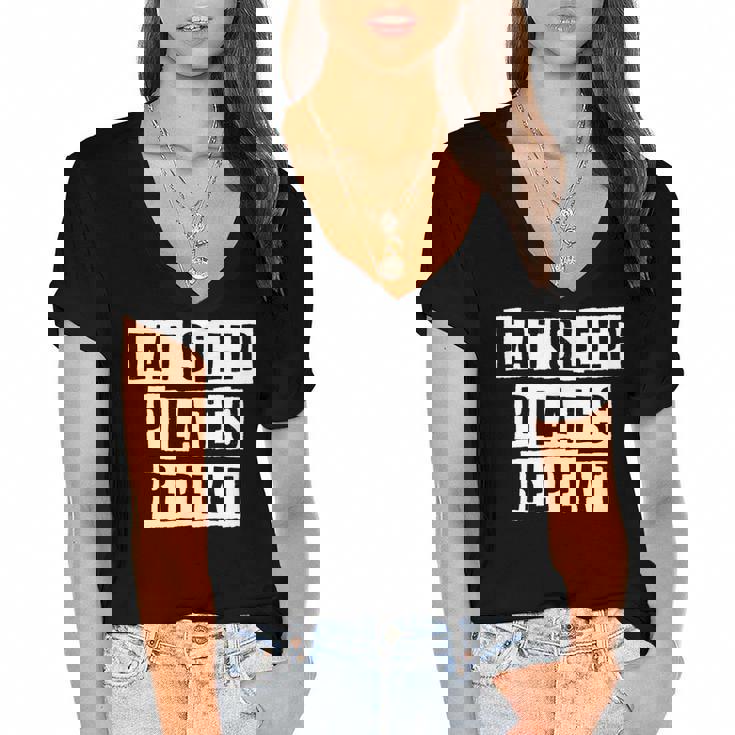 Lovely Funny Cool Sarcastic Eat Sleep Pilates Repeat Women's Jersey Short Sleeve Deep V-Neck Tshirt