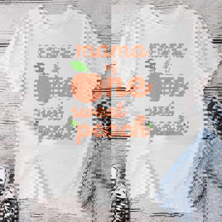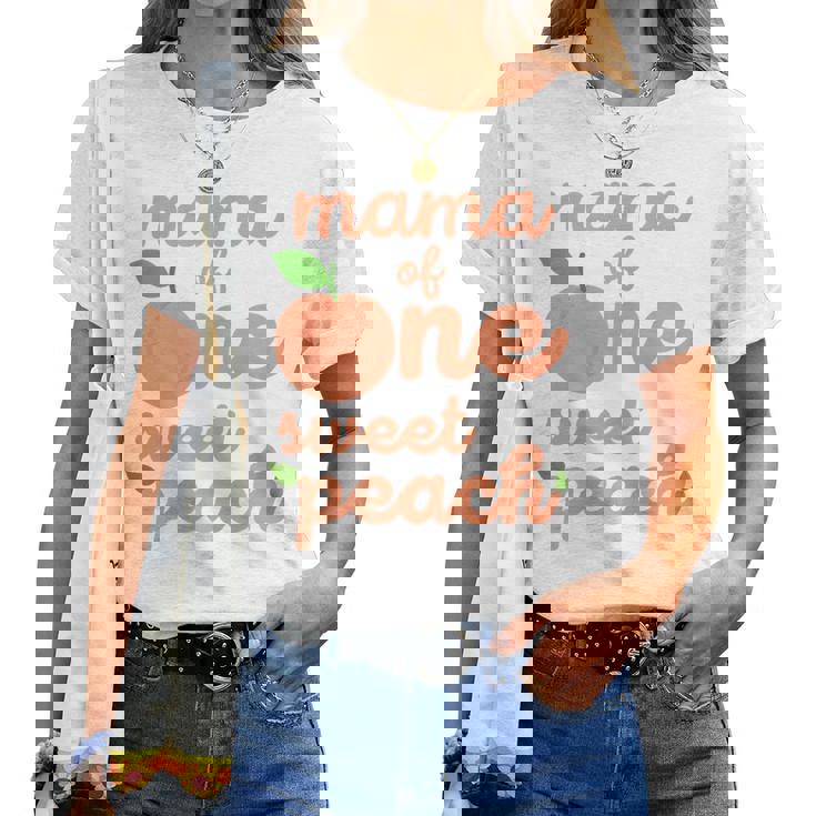 Mama Mom First Birthday One Sweet Peach Bday Family Matching Women T-shirt