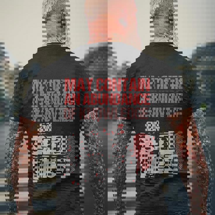 May Contain An Abundance Of Knowledge True Crime V2 Men's T-shirt Back Print is designed for those who appreciate style and comfort, with a standout design on the back.