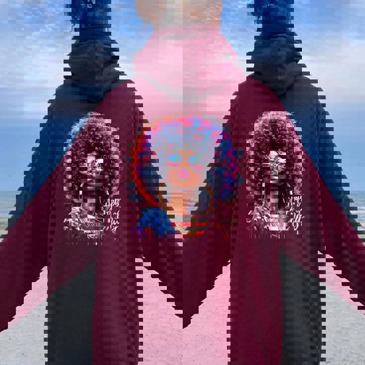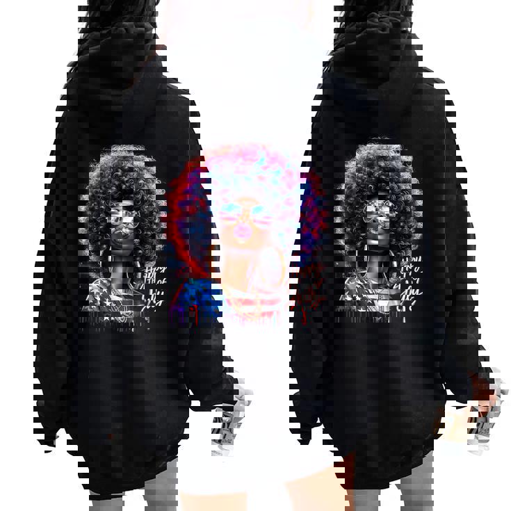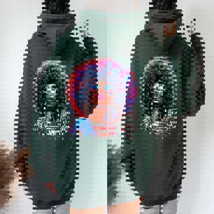 Melanin Afro African Happy 4Th Of July Black Girl Us Flag Women Oversized Hoodie Back Print