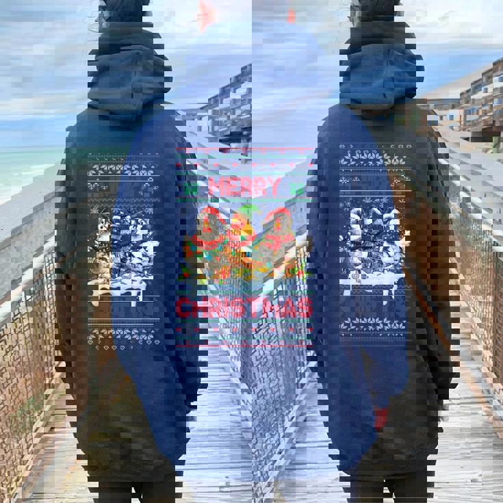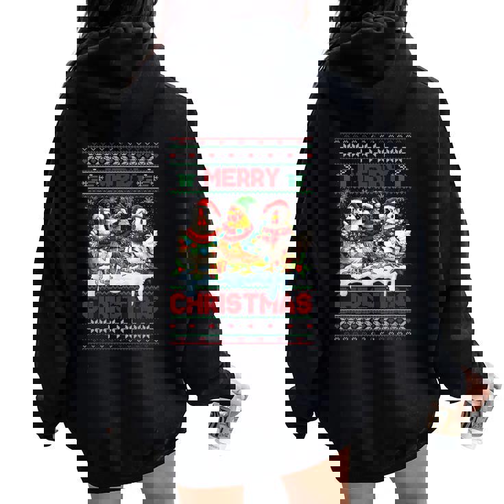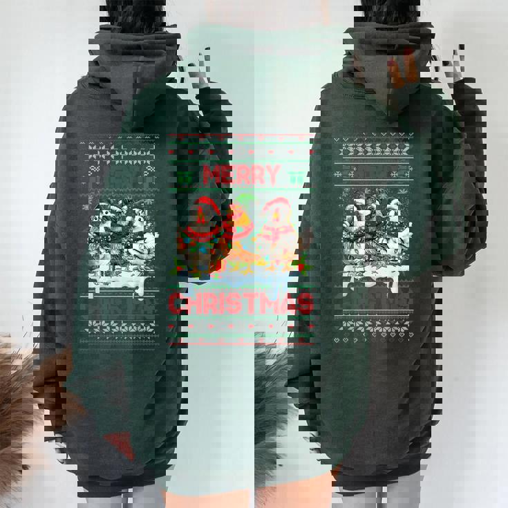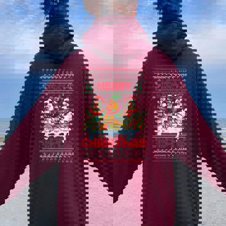 Experience the perfect blend of oversized comfort and eye-catching back print with Merry Chickmas Ugly Sweater Chicken Lovers Christmas Outfit Women Oversized Hoodie Back Print.