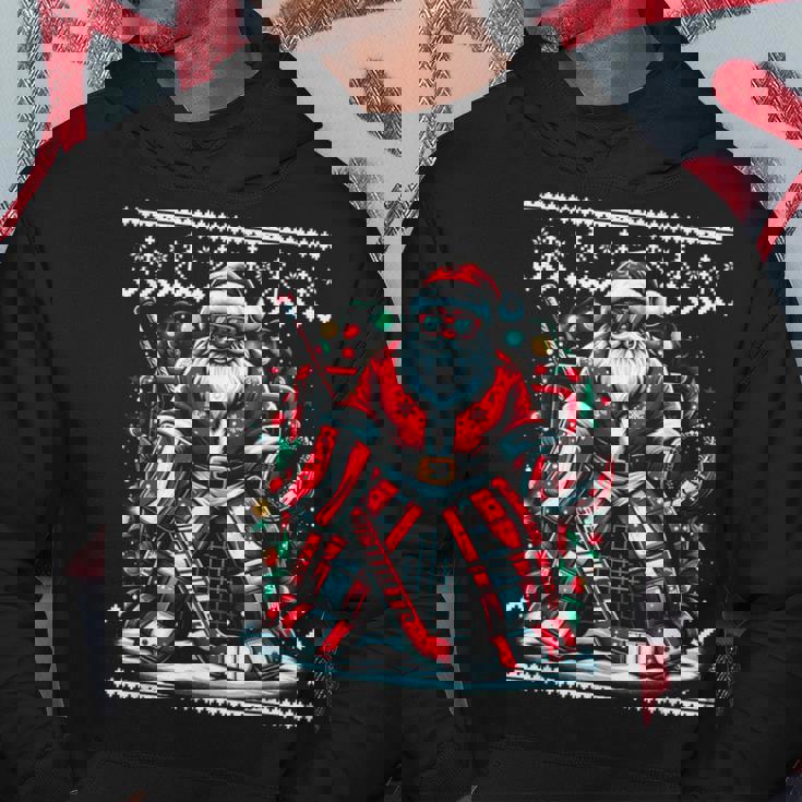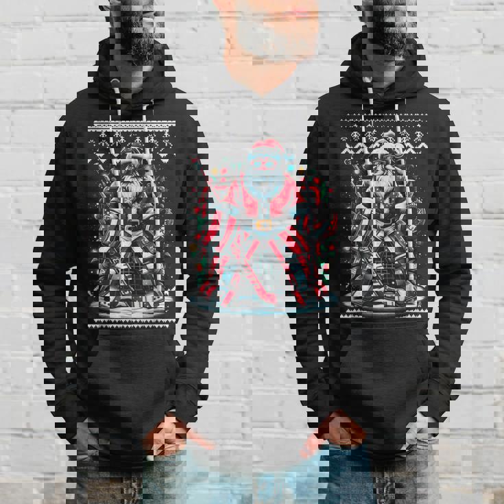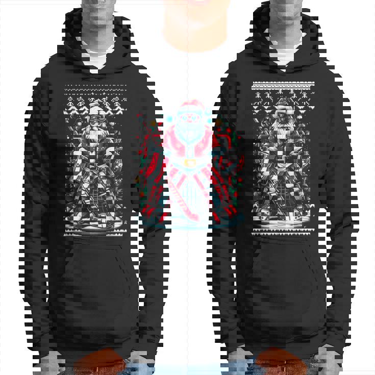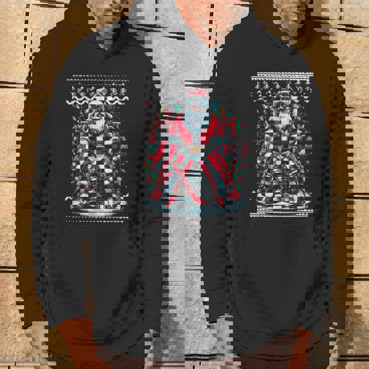 Merry Christmas Santa Hockey Goalie Ugly Christmas Sweater Hoodie