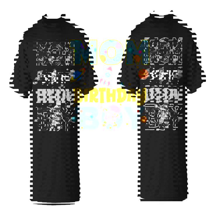 Mom Of The Birthday Boy Astronaut Family Space Planets T-Shirt