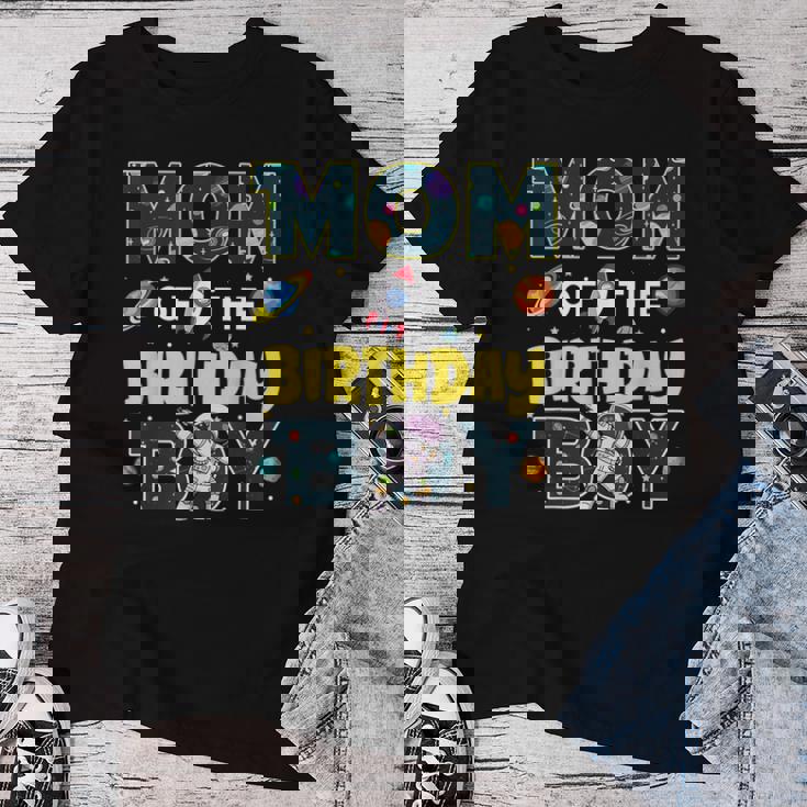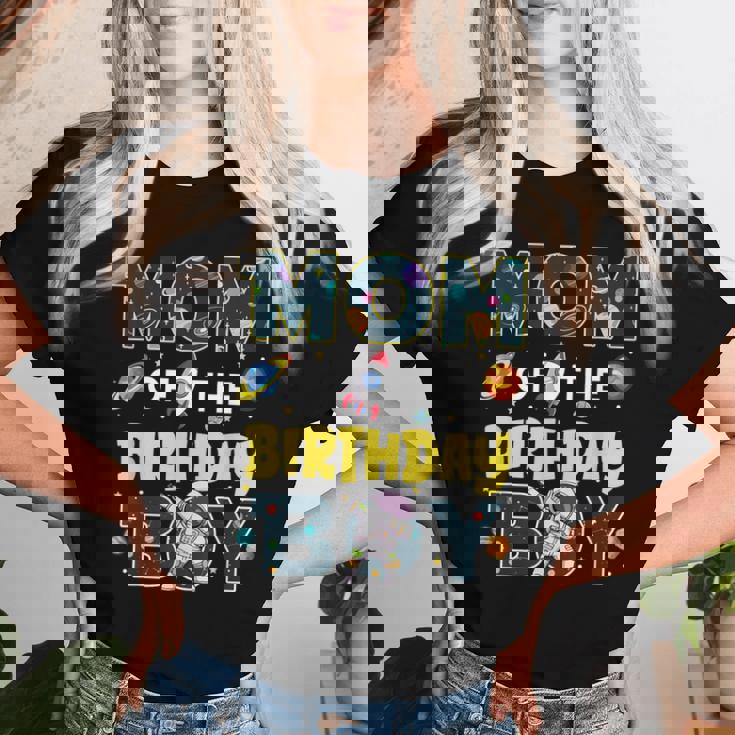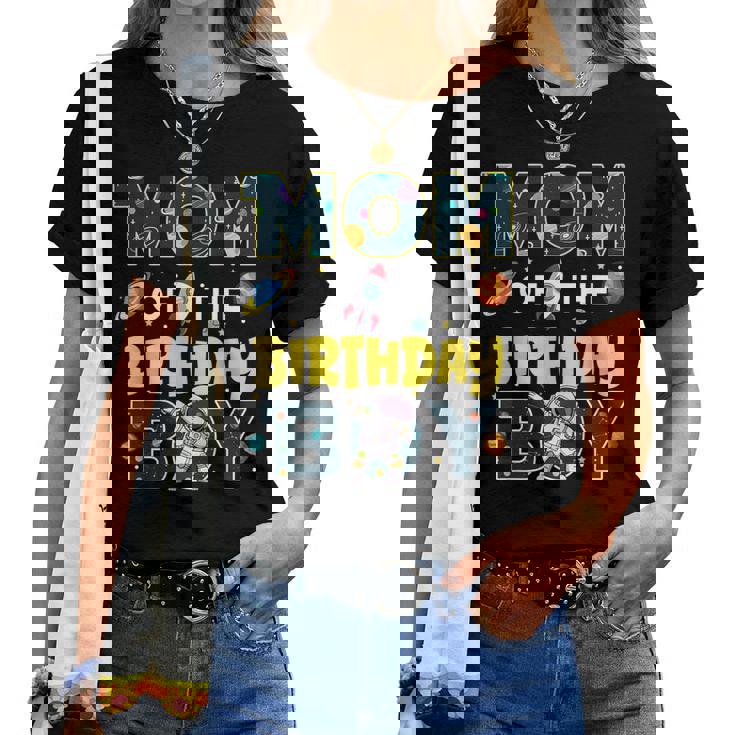 Mom Of The Birthday Boy Astronaut Family Space Planets Women T-shirt