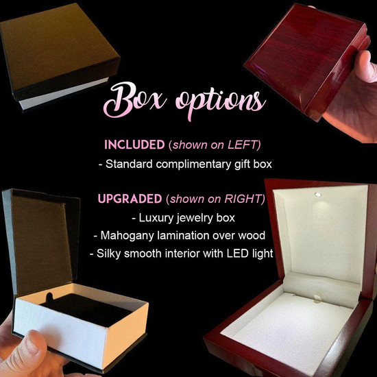 - The optional upgraded jewelry box is a high-gloss mahogany finish.