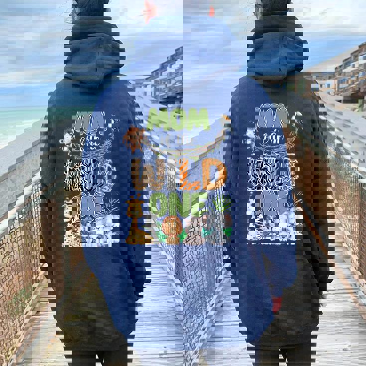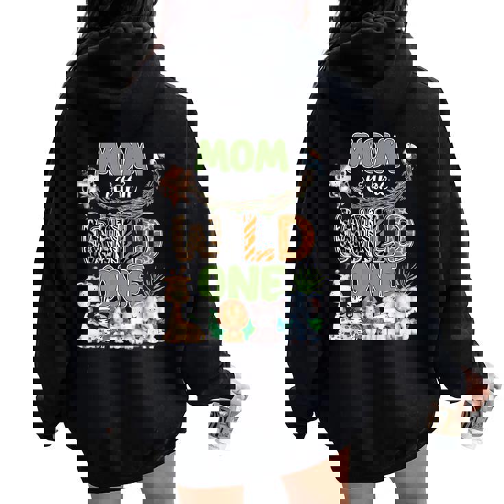 Mom Of The Wild One 1St Birthday Family Safari Jungle Party Women Oversized Hoodie Back Print