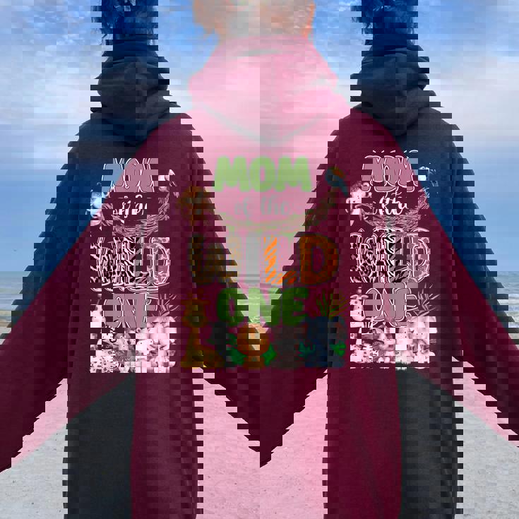 Experience the perfect blend of oversized comfort and eye-catching back print with Mom Of The Wild One 1St Birthday Family Safari Jungle Party Women Oversized Hoodie Back Print.